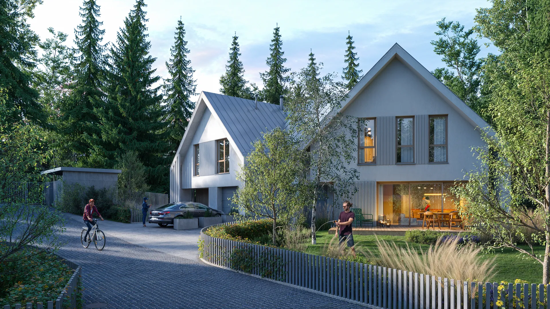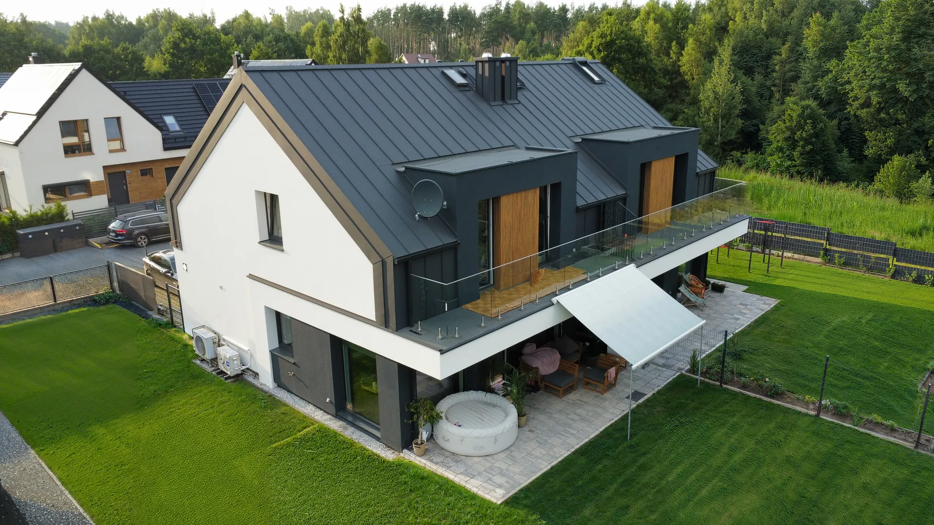 Nowoczesny dom w zabudowie dwulokalowej, położony na granicy Gdańska, z pięknym widokiem na jezioro Wysockie.