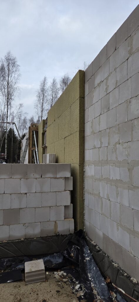 Równocześnie w budynku B prace nabierają tempa – praktycznie cały parter jest już wymurowany, a ściany zaczynają wyraźnie pokazywać przyszły układ wnętrz. Co ważne, wykonaliśmy również izolację akustyczną pomiędzy sąsiadującymi lokalami, widoczną na dołączonym zdjęciu. Komfort akustyczny to dla nas jeden z priorytetów, dlatego cieszymy się, że możemy już teraz pokazać rozwiązania, które przełożą się na codzienną wygodę przyszłych mieszkańców.